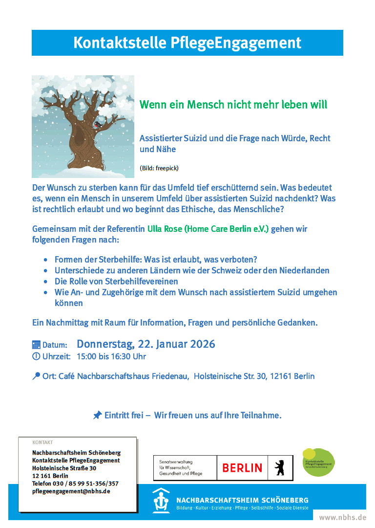 Die Kontaktstelle PflegeEngagement lädt zu dieser besonderen Veranstaltung am 22. Januar 2026 ein. In der Einladung heißt es: